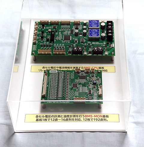| 12月10日 | 大阪科学技術センターで開催された『蓄電システム診断・利用懇話会』の第3回会合でBMSのCPU基板とMON基板を展示しました。この懇話会は座長が辰巳先生(前産総研関西センター所長/現電気安全環境研究所)、 副座長に内本先生(京都大学教授)がされています。![]() |